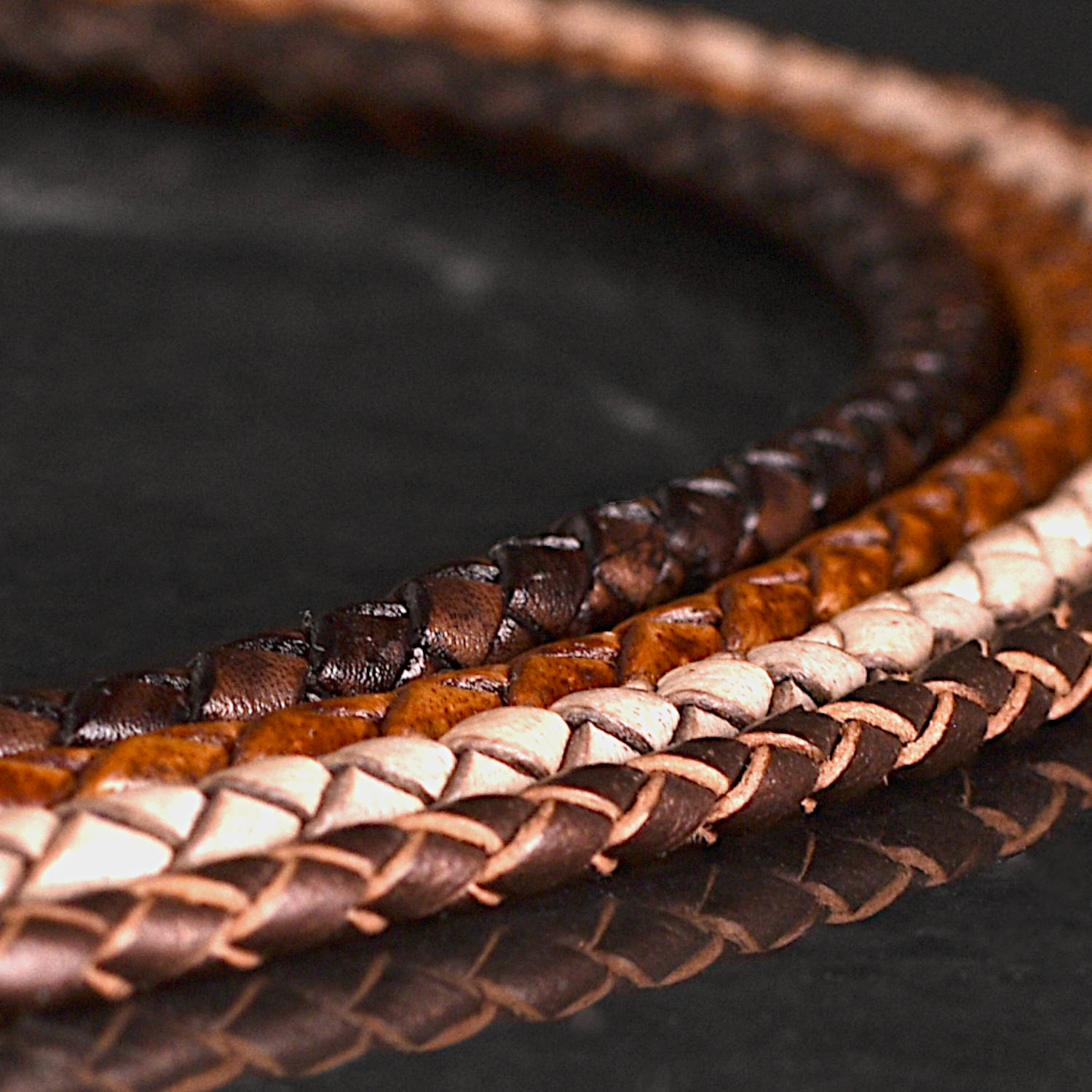 Leon - Interwoven leather bracelet with white seam