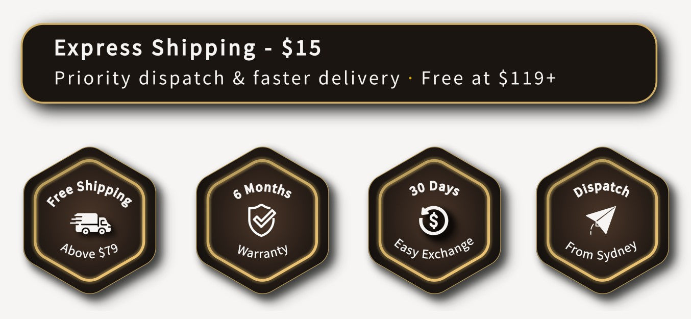 Free size exchange. 6-month warranty. Ships from Sydney.